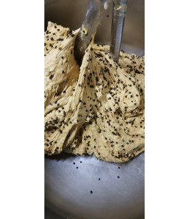 L'impasto di questa focaccia è fatto con farina di pistacchio siciliano. All'interno inseriamo una farcitura di pistacchio che lo rende ricco di gusto e delizioso al palato.